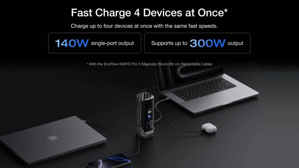 - Temperature control: Keeps the unit cool during high-speed charging.